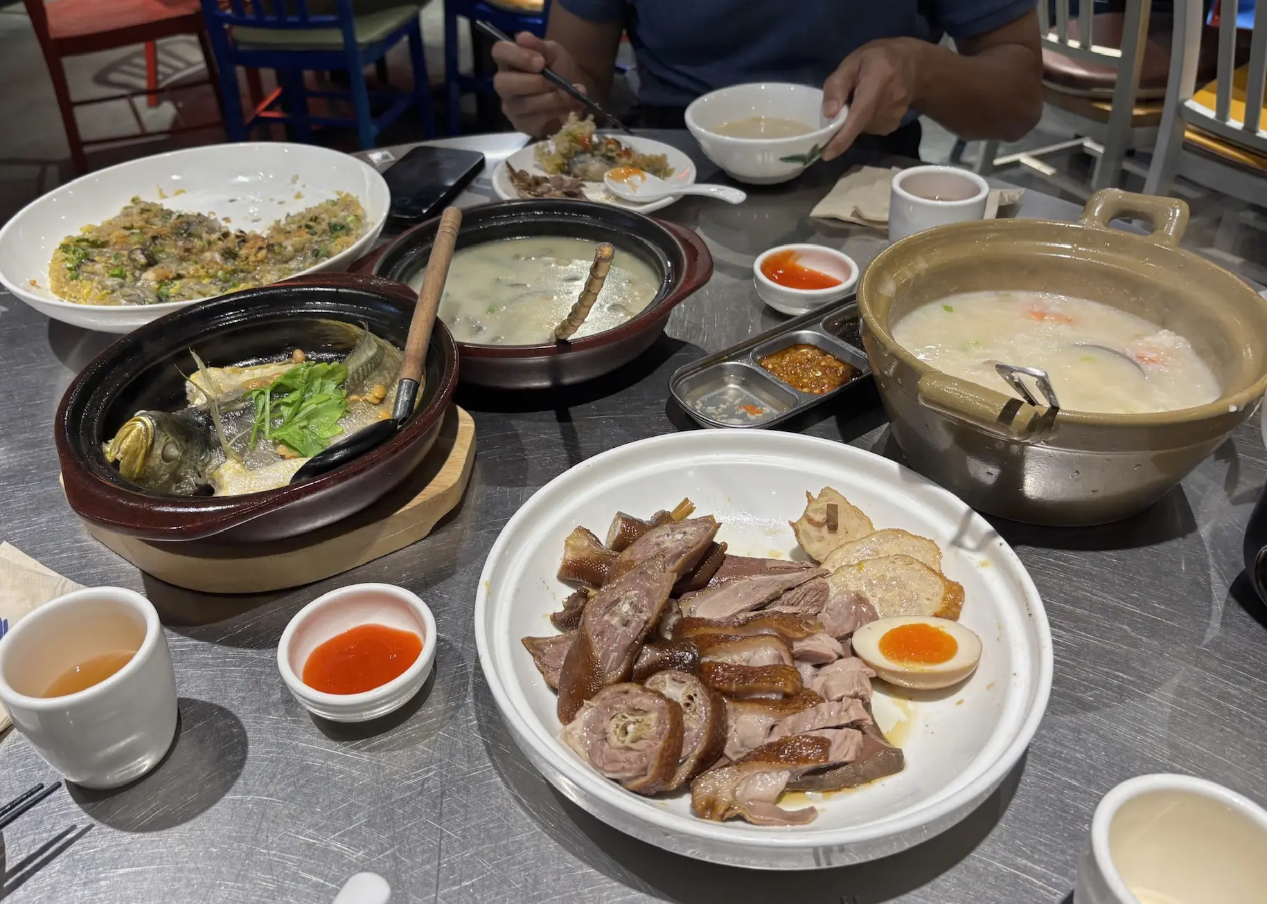 Our time in Shenzhen mostly consisted of working at coffee shops (me finishing some final projects, as I left two weeks before the school year officially ended), complaining about the terrible tropical heat and humidity, and eating. Some of the food highlights were the 大红袍脆皮乳鸽, a Hunanese white pepper dish, and a 潮汕-style clay pot fish. I was in general just happy with cheap food, fish, good peppers, and bamboo shoots.