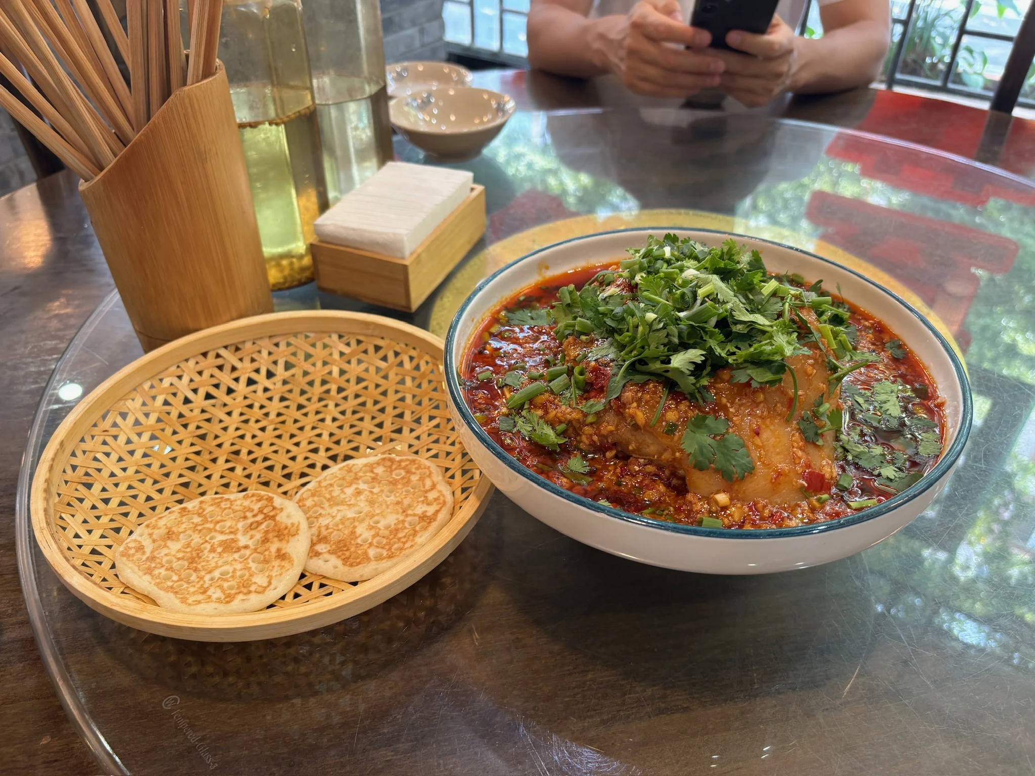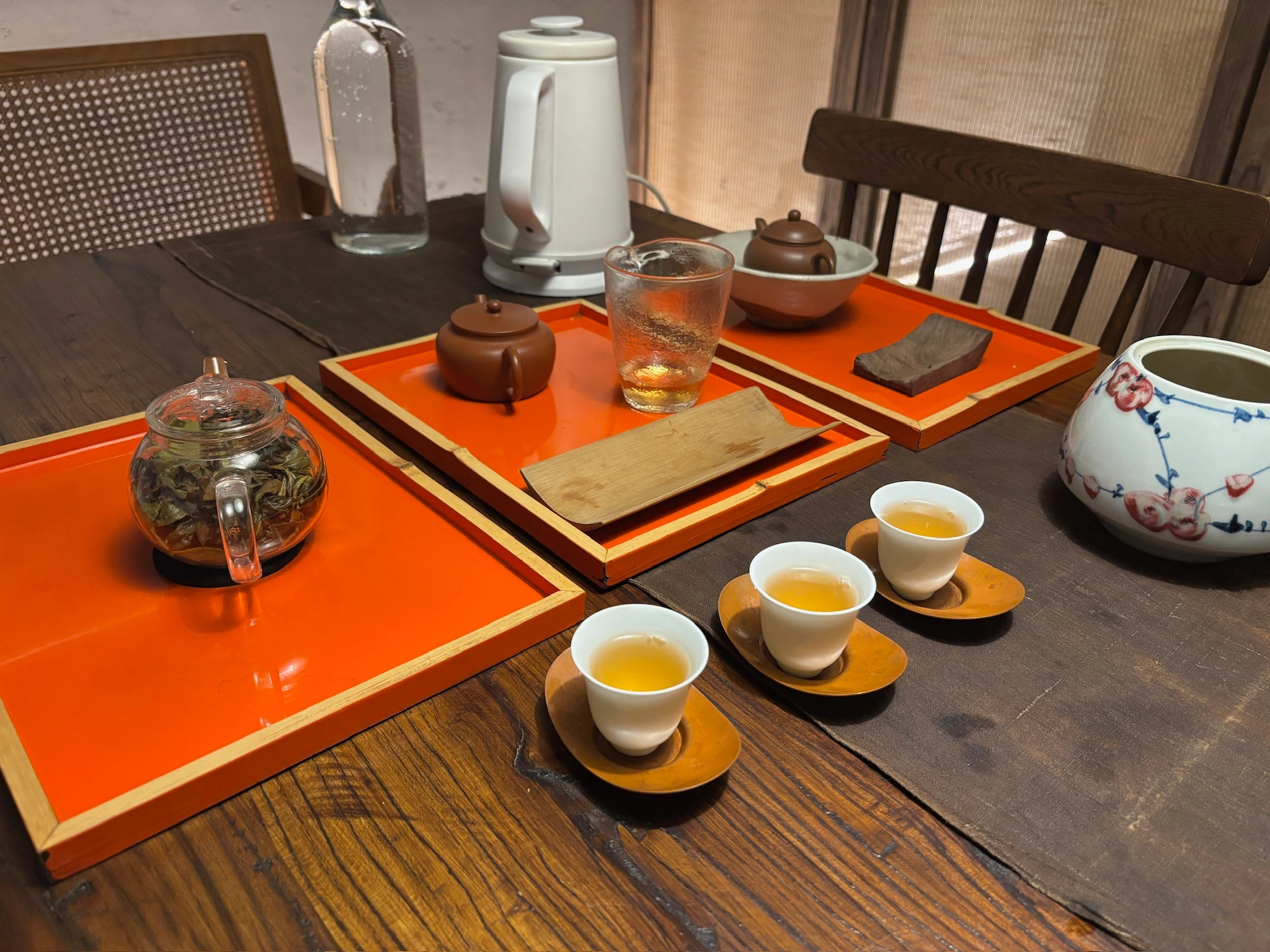 We made it to Chengdu after two weeks (once I finally got my documents sorted out). My grandparents (mom’s side) live at the edge of the college campus where they used to teach. Their apartment window overlooks the track, so a reliable source of entertainment for us was watching the various athletic activities happening below. The campus has two large lily ponds, and on sunnier days you could walk around the ponds and smell the lilies in the air. It was a very familiar smell that I had forgotten about. Our time in Chengdu was mostly: eating, walking around campus, and finding other places to walk around. A few afternoons we went to tea houses. One place had a 漳平水仙 (a Fujianese oolong) that all of us really liked, so I bit the bullet and bought a few quite expensive single-portion packs to bring home.