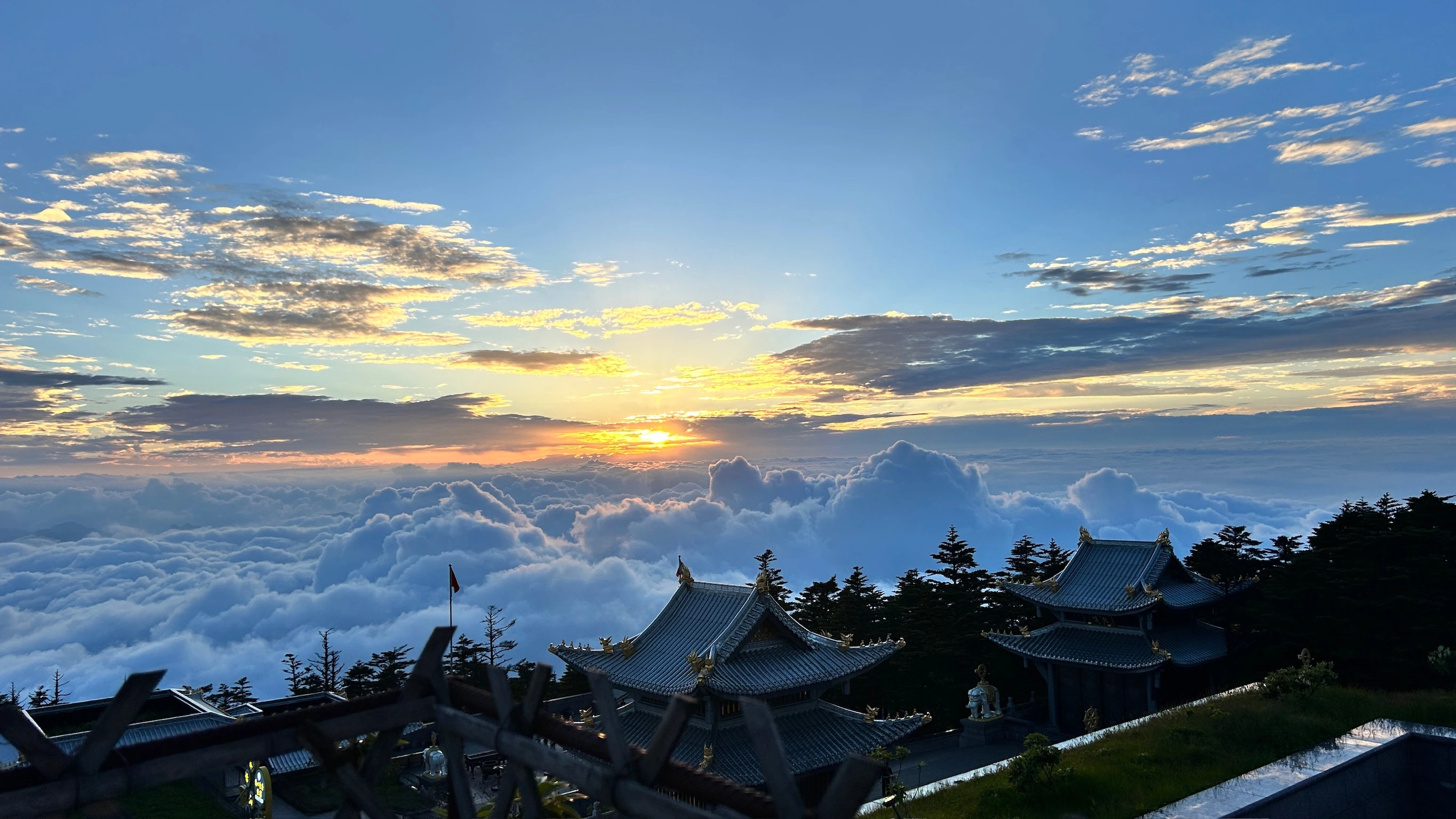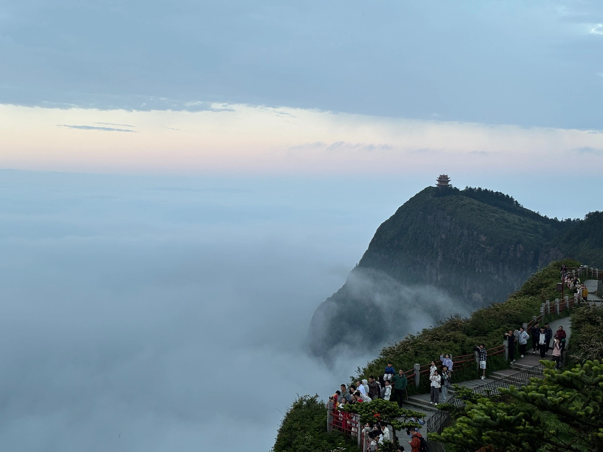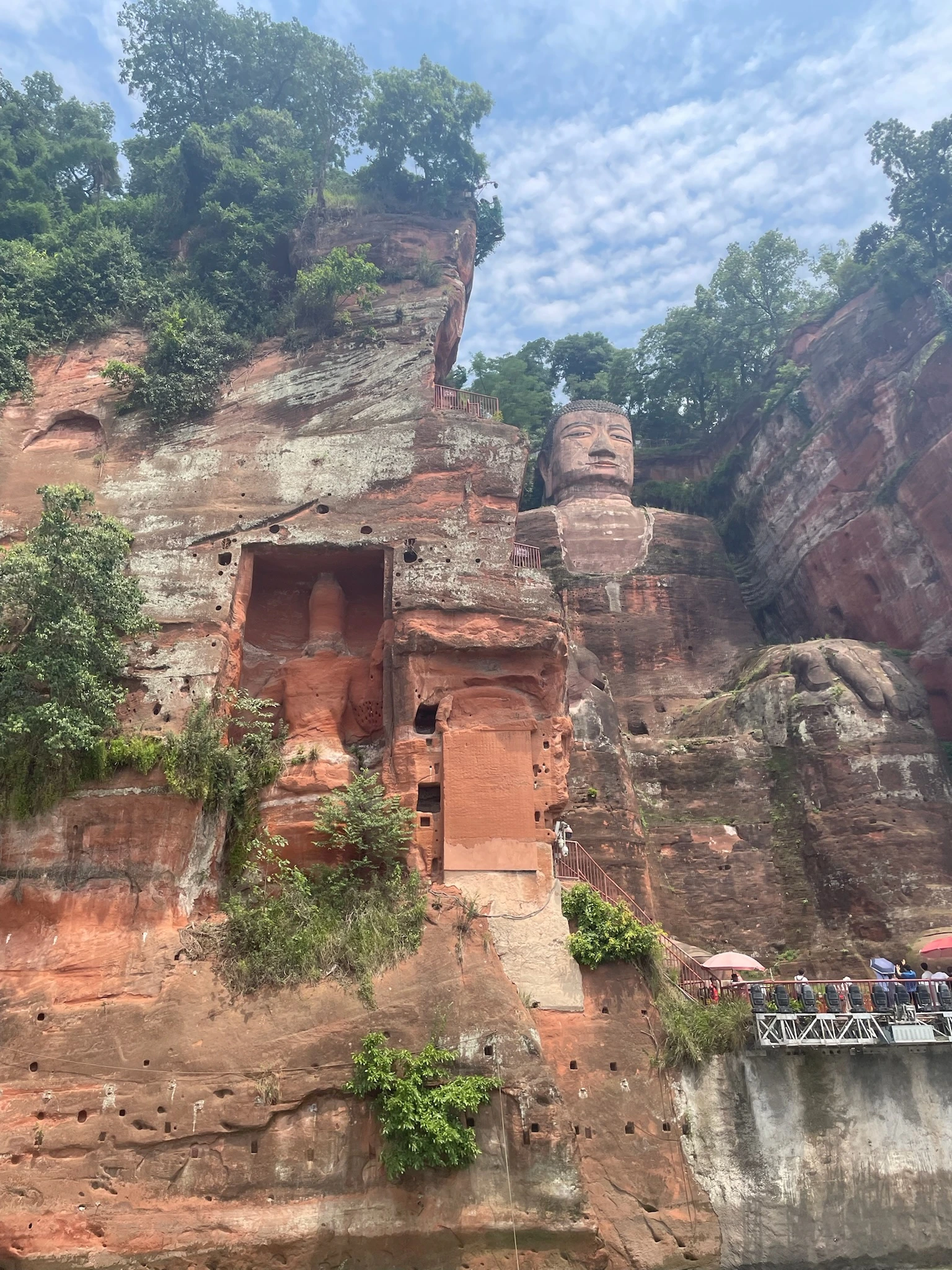 The only longer trip we managed to fit in was an overnight trip to 峨眉山, where I haven’t been probably since I was seven. We drove through 眉山, where we visited 三苏祠 (the childhood home of 苏东坡) and had some 东坡肘子 (a famous pork knuckle dish that 苏东坡 liked, among many other similar fatty pork dishes). We got to 峨眉山 early afternoon. We went to a few of the temples before taking the shuttle to 雷洞坪, where we then hiked up to 金顶, literally the “golden top” of the mountain (around 3000m altitude). We caught the sunset, and there were few enough people (very rare at these famous Chinese mountains) that you could still feel like you were really somewhere special. If my favorite parts of the US are along the Pacific Coast, my favorite parts of China are the mountains. We stayed the night at the top (Jasper and Calder experienced a somewhat cheaply built Chinese tourist-attraction-outside-cities hotel for the first time, which were a very big part of my growing up), slept mediocrely, then woke up at 5:30 to catch the sunrise. The sunrise wasn’t as good as the sunset: It was too crowded, and the sun never fully rose above the clouds, but watching the clouds part and come together was still nice. We soon hiked back down, saw some monkeys on the way, then drived to 乐山. There, we saw the big buddha from a boat on the river, as well as the junction where 岷江 and 大渡河 meet before flowing into the main stream of the Yangtze.