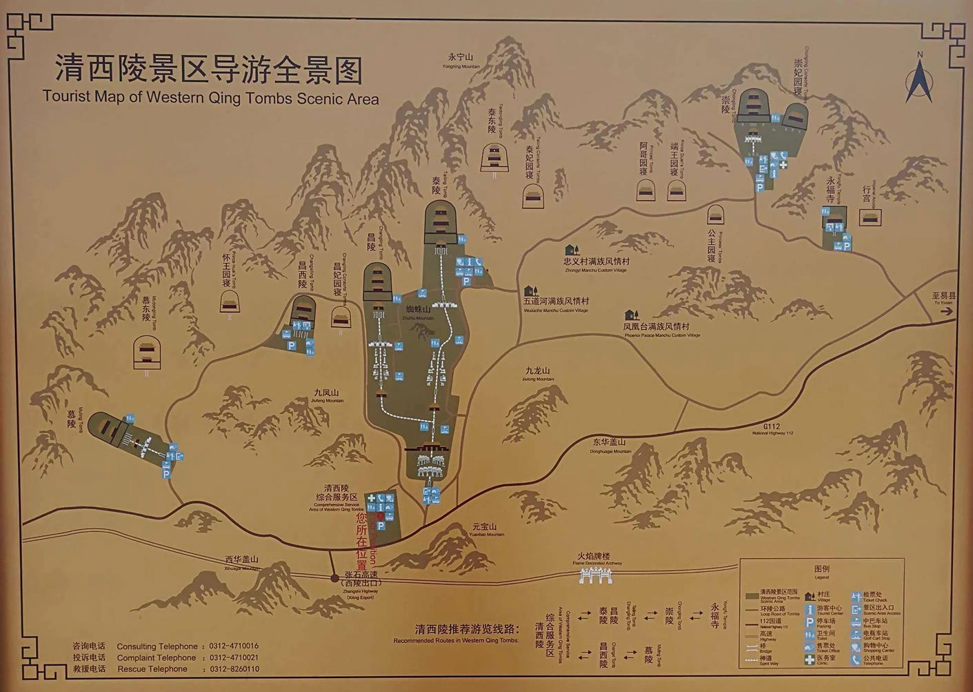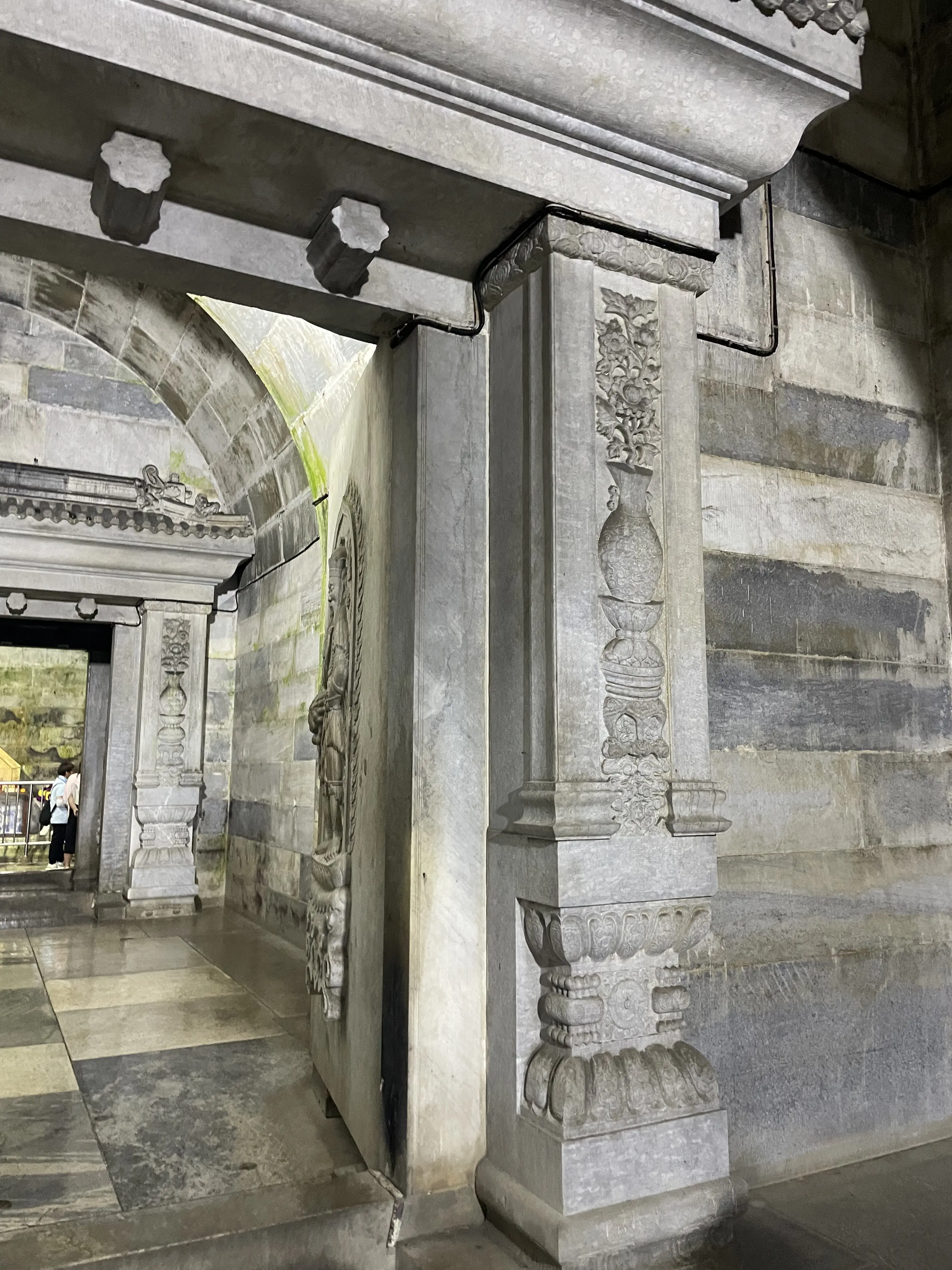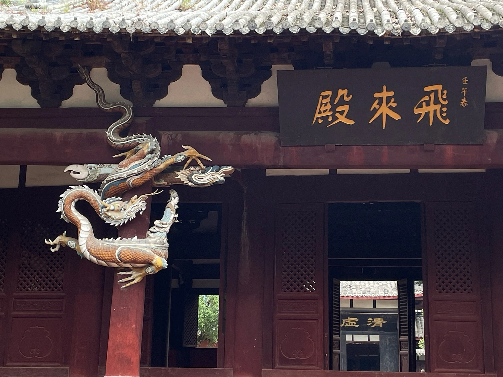From Chengdu, Jasper and Calder flew to Japan, and I headed to Beijing for a few days. My family has always really liked 明十三陵 (the Ming Tombs), which is closer to where we live, in the north of Beijing. This time I was staying with a friend who lives in the south of the city, so we drove all the way to 清西陵 (the Western Qing Tombs) in Baoding, Hebei. The Qing tombs are laid out similar to the Ming tombs: The central tomb (usually the emperor who first chose the place) stands against the backdrop of a wall of mountains to its north and faces open land in the south, with two smaller peaks at its left and right, resembling a throne. The rest of the tombs are scattered in the crooks of the mountains nearby, all with their backs to the mountains and fronts to the shared open plain. The mountains here are a branch of the Taihang mountain range, which stretches from Beijing southward to form the natural border separating Shanxi to its west and Hebei + Henan on its right. Since the tomb complex is relatively far from the cities, it is much less popular than the Ming tombs. This meant two very nice things for me: one, it was basically empty when we went, thus a rare relaxing experience; and two, they are in less of a hurry to finish restoration. So several of the main halls still maintained parts of the original build (which is not crazy, since many of these were built in the last century), with the roof tiles still the original glaze and some of the indoor columns with their original decorative tiles. 慕陵 (tomb of 道光) had a beautiful main hall built entirely of 金丝楠木. 崇陵 (tomb of 光绪) was robbed in the civil war, so its underground chamber was excavated and open to the public. I always wonder what the state of archaeological conservation technology is and to what extent it’s a matter of funding; it would be cool if we can start safely excavating (or at least getting better scans) of these tombs within my lifetime.
