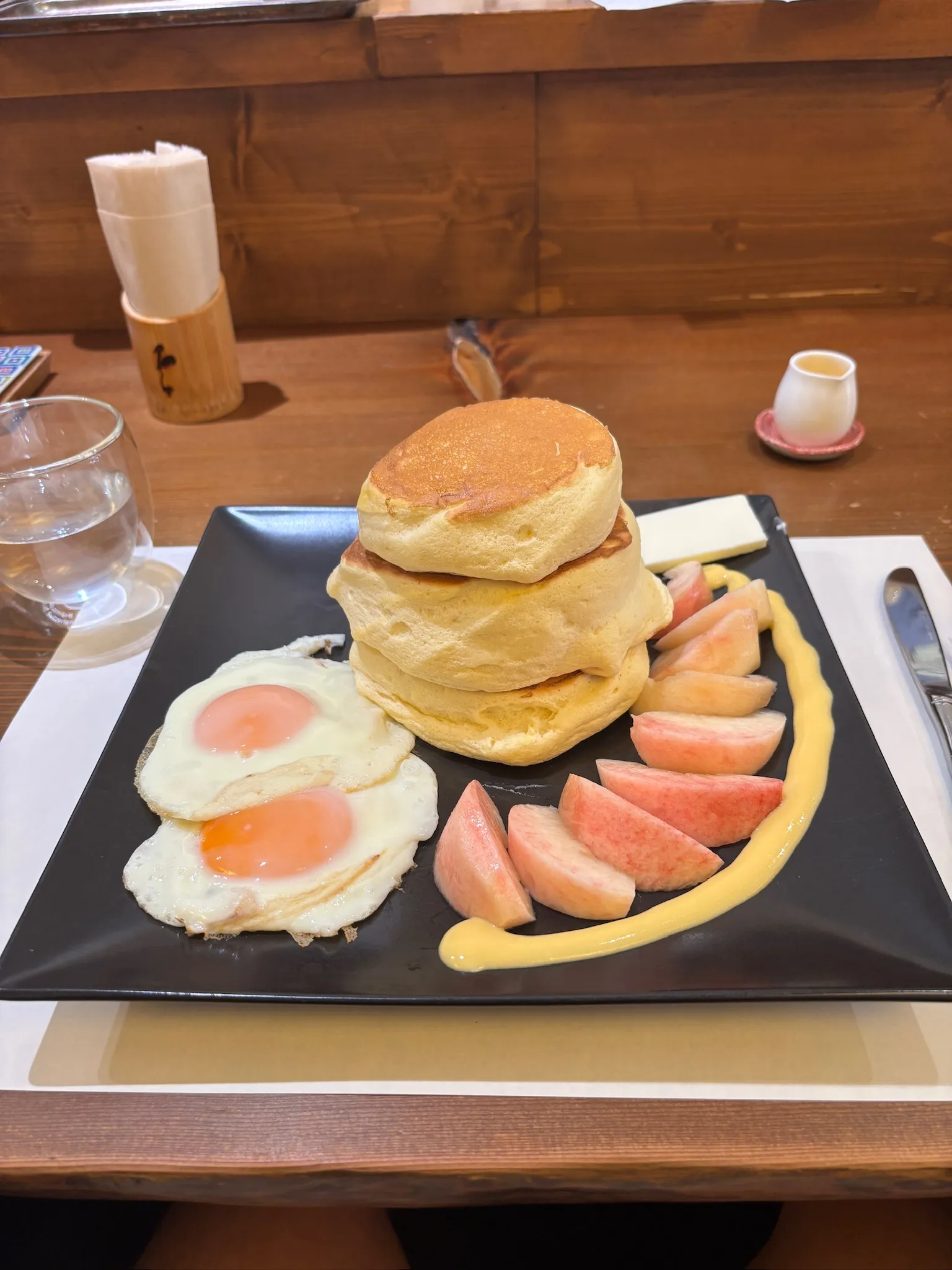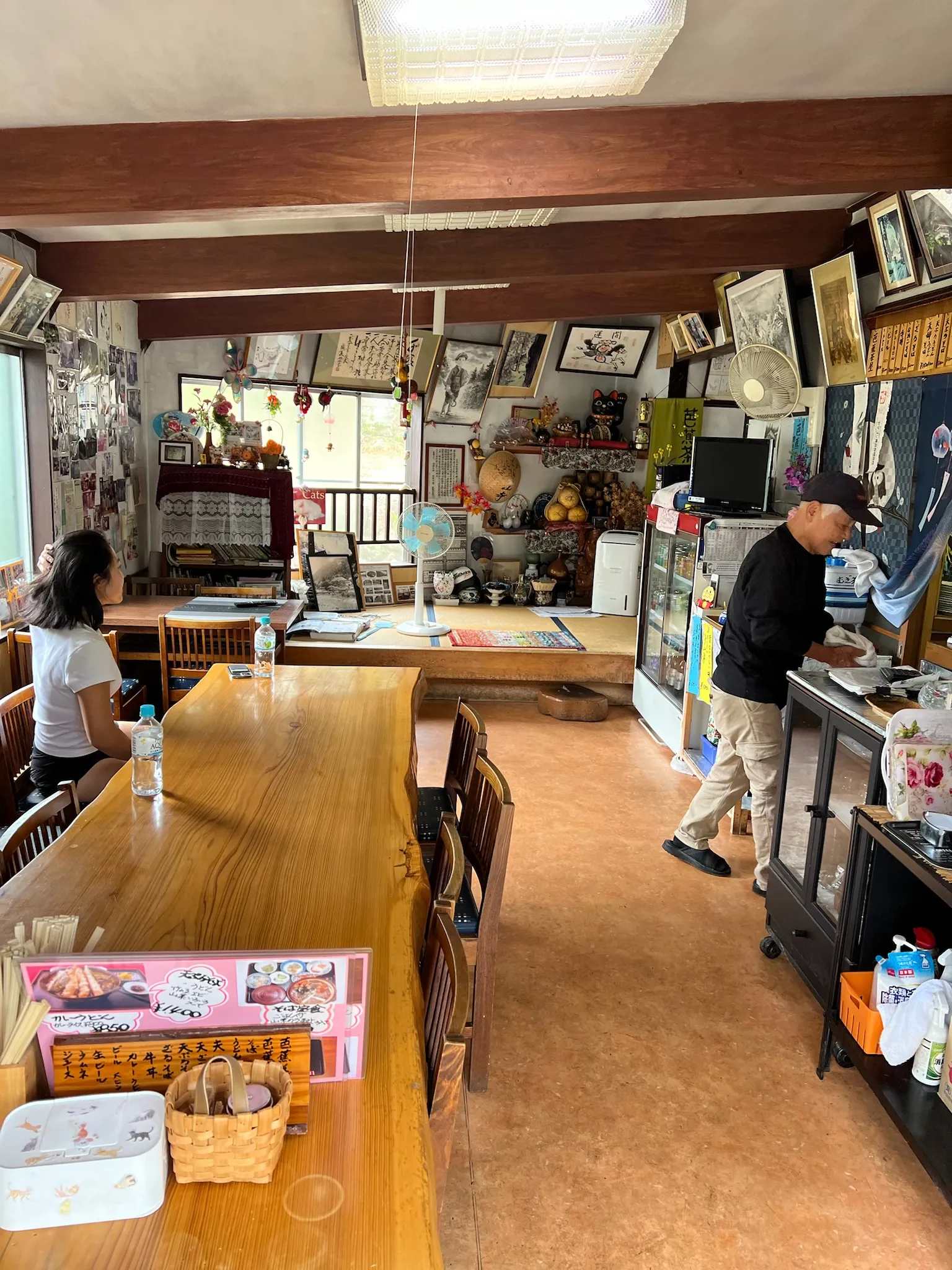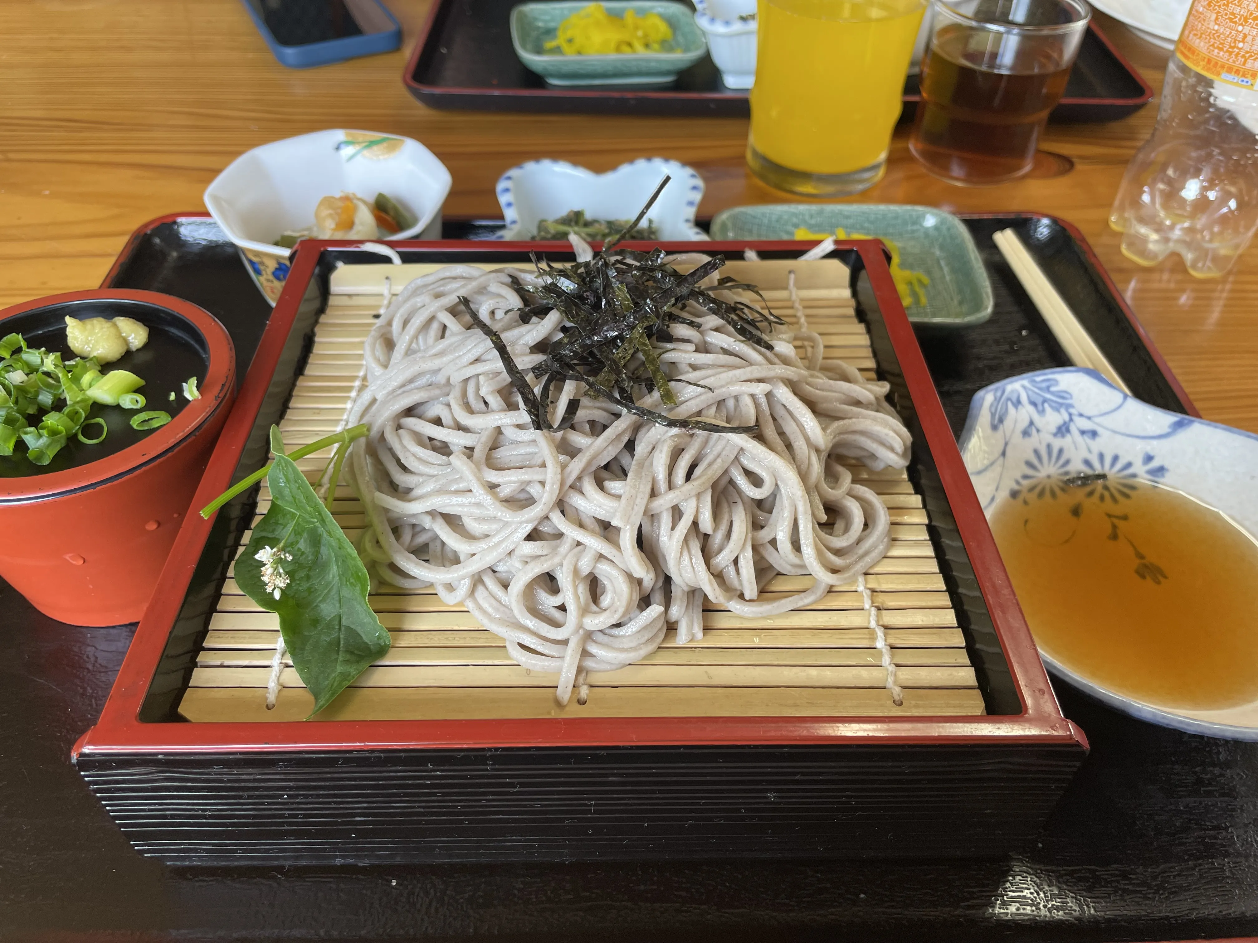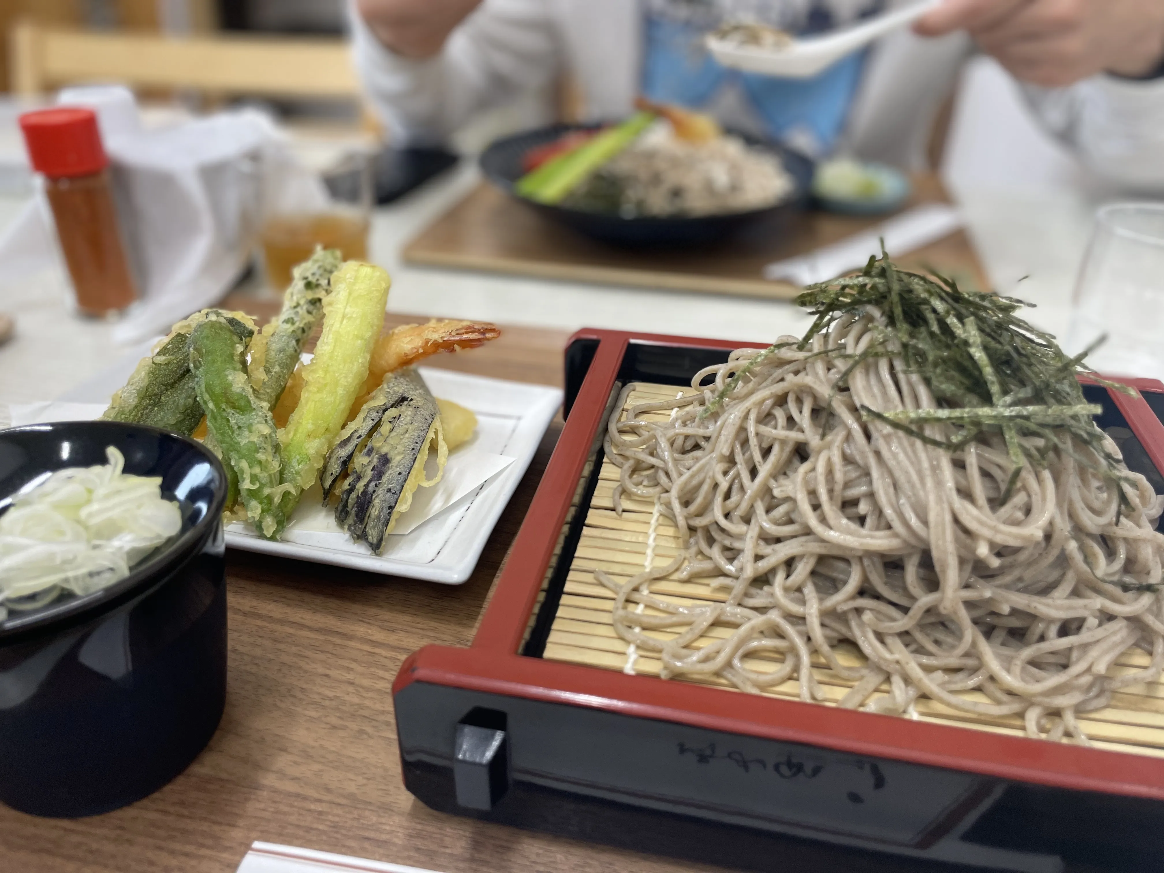 We arrived at a small soba restaurant in Yamadera near the temple entrance for lunch. The restaurant was just the living room and kitchen of an older couple’s home. The husband was extremely smiley and enthusiastic, not at all dimmed by the need for many rounds of lossy communication via Google Translate. There were probably twenty minutes of discussions about the menu and dietary restrictions interspered with questions about where we were from and what the relationships between each of us were.