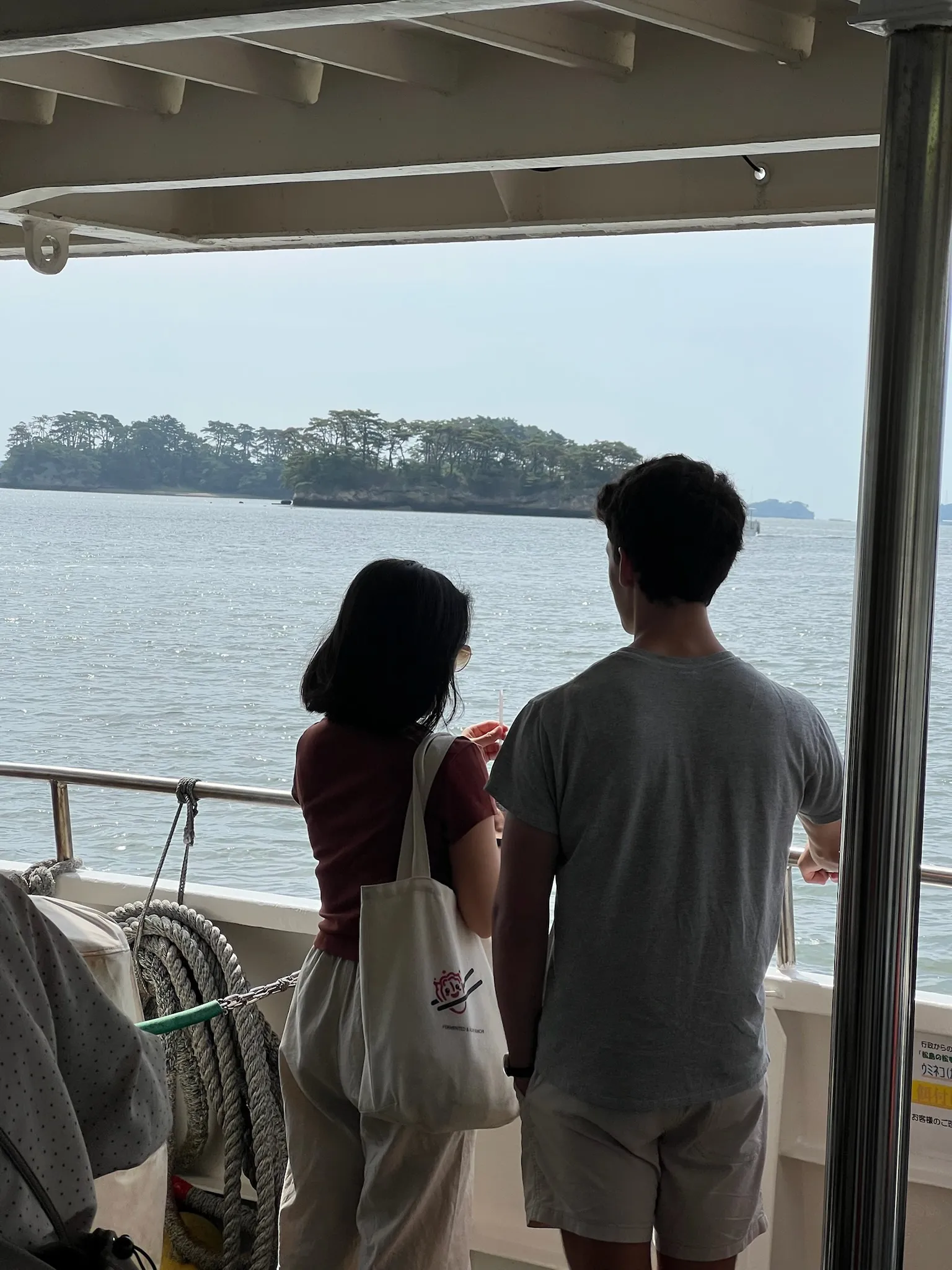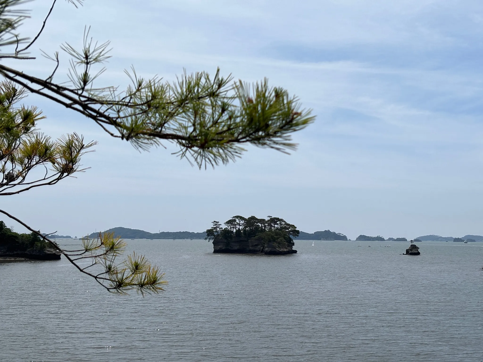 The eastern coast of Japan is craggly, with lots of bays and small islands just off the coast, and the land is quite close to sea level. So when you stand on the coastline and look out to the Pacific Ocean, the waters always look peaceful. Matsushima Bay, especially, is a still, picturesque landscape; the small islands and wind-blown pines cut a very defined shape against calm waters. We took a cruise that sailed around the bay, and I had my boxed milk and steamed cheesecake bread while looking out at the islands and trying to hear the tour guide over the wind. A very nice morning affair.