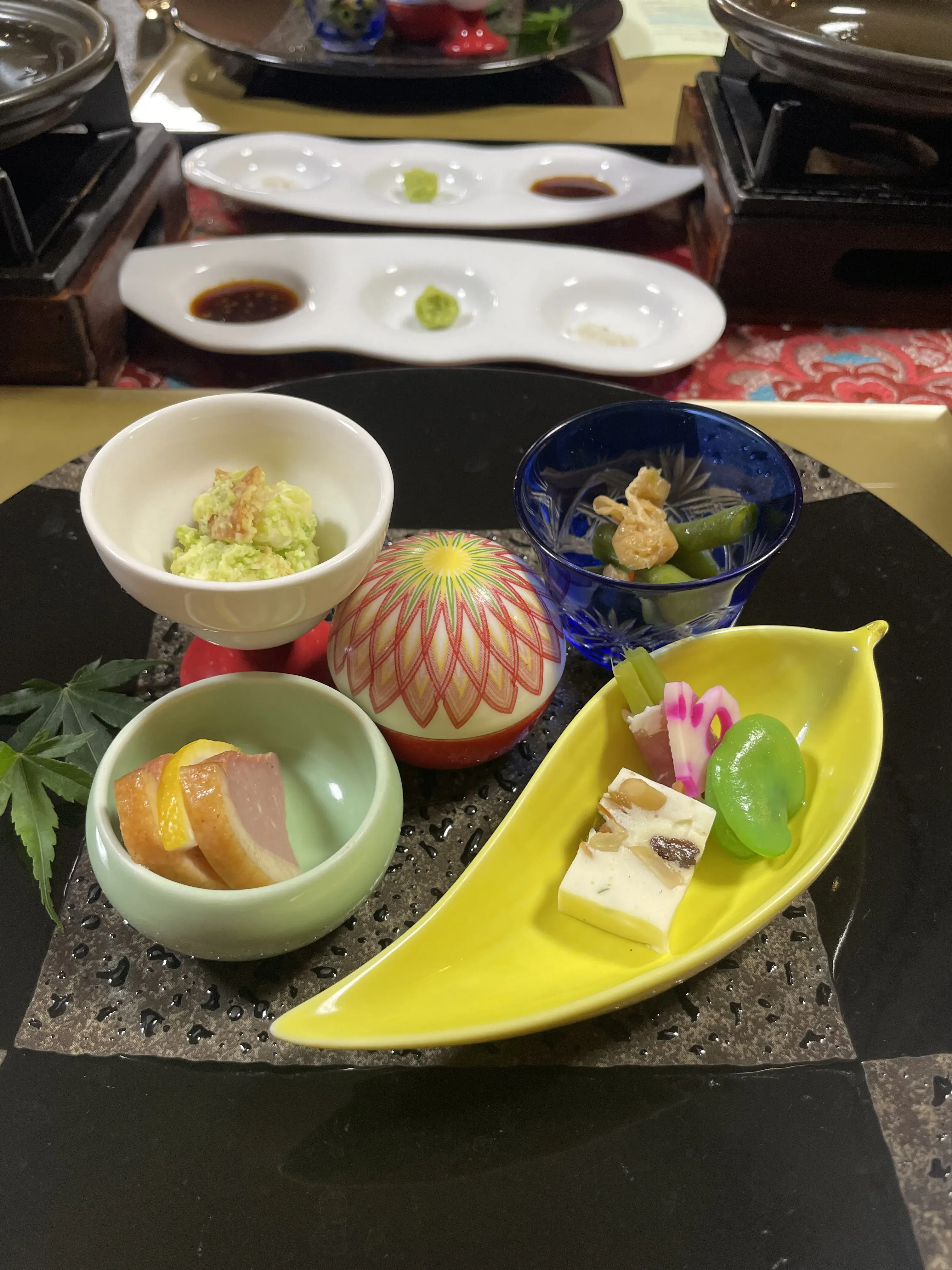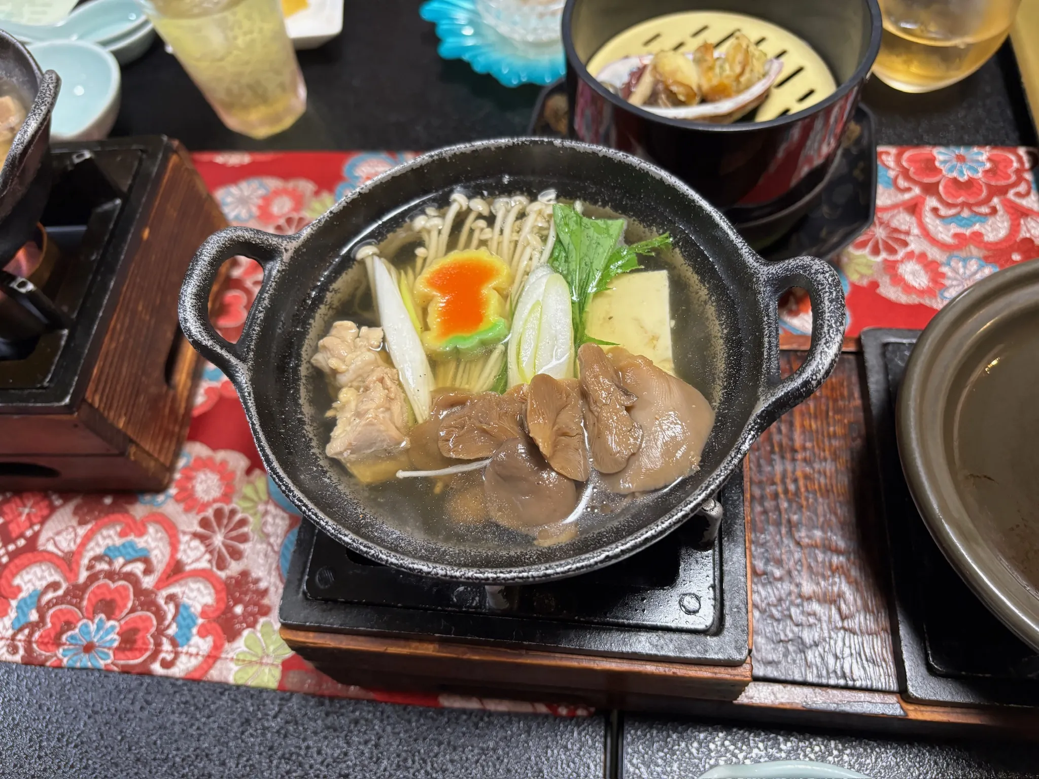 After the temple, we were headed to our ryokan at Zao Onsen in time for a kaiseki dinner. This part of the Yamagata prefecture is deep inland in the mountains, so the food featured lots of mushrooms, wild veggies, and heartier soups. It was fun trying a little bit of everything, and I quite enjoyed the various mushrooms in the chicken nabe. Another highlight was the imoni (a taro and beef stew) served the next morning. However, we were definitely not hungry enough for all the food.
