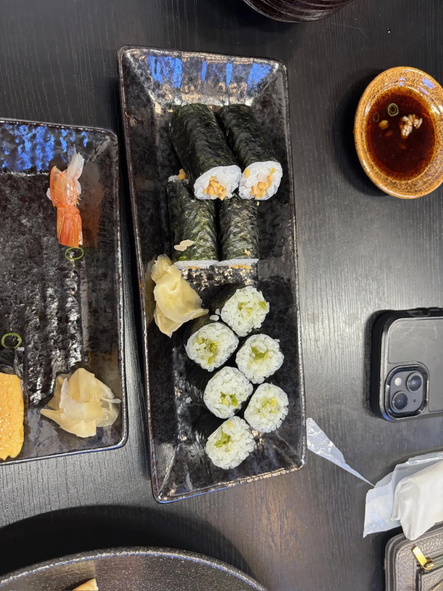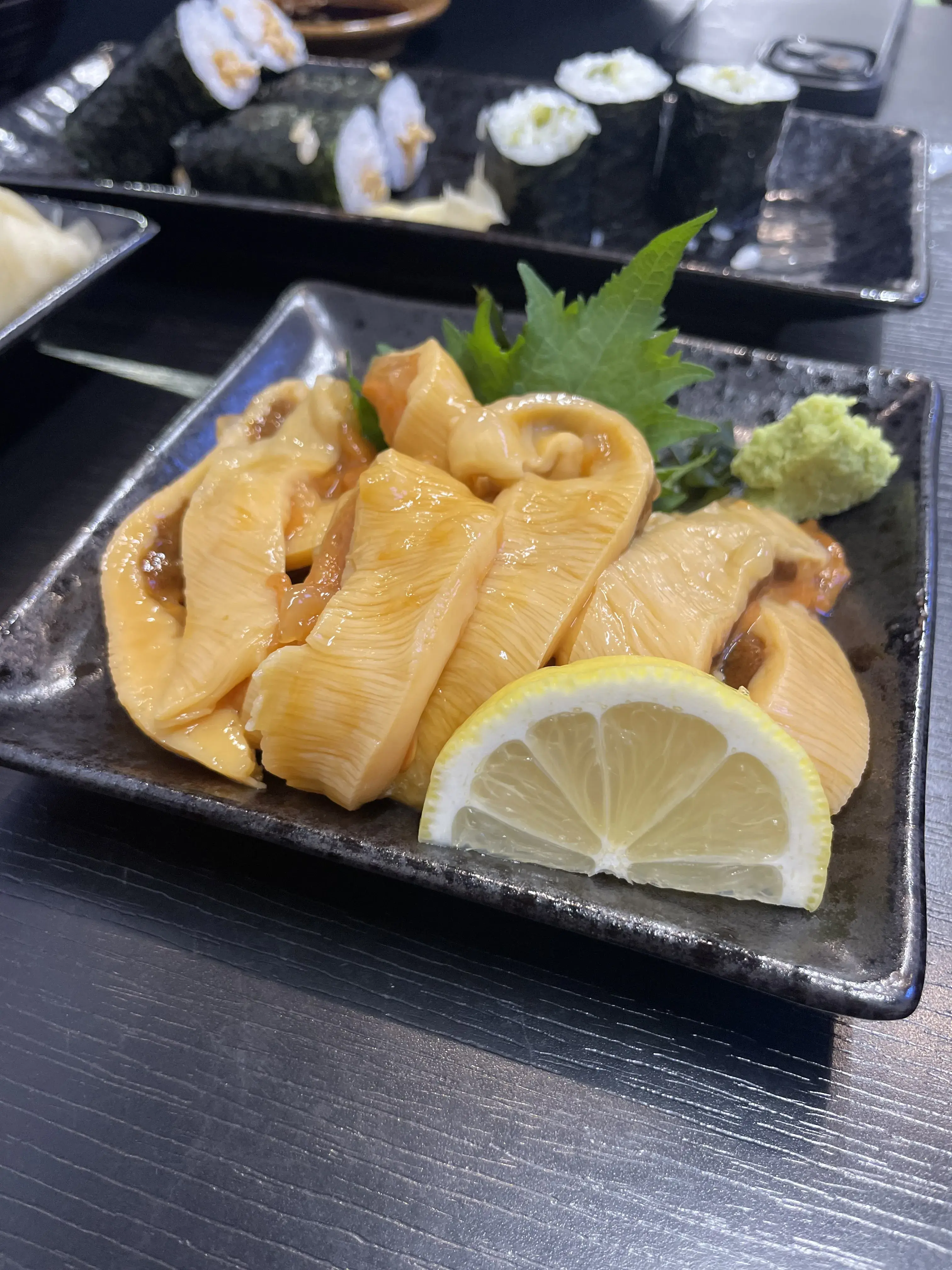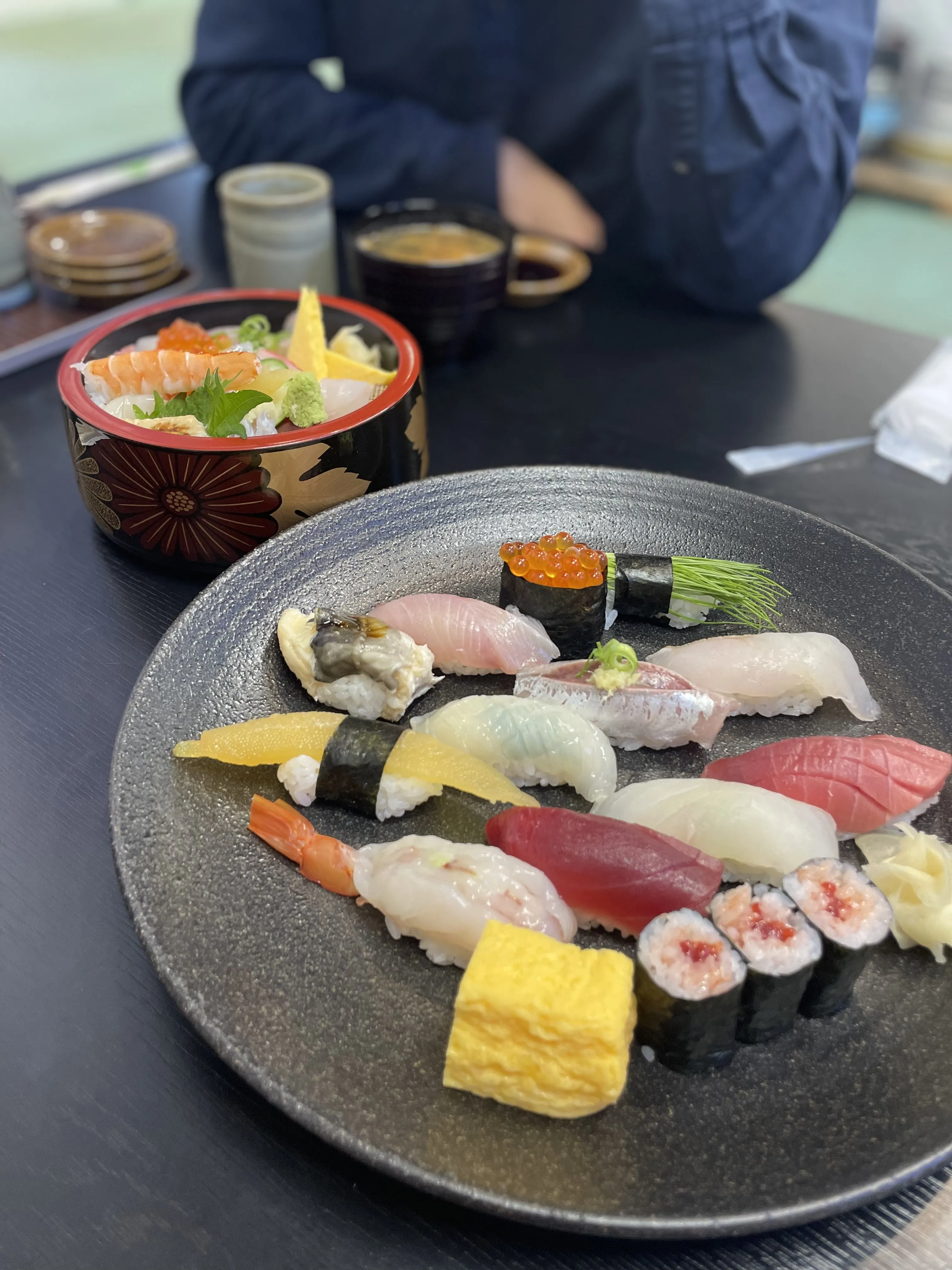 The Internet told us that a specialty of Kamaishi was its sea pineapple, so that was our main mission for lunch. Lucky for us, the restaurant had one last portion of sea pineapple left. Along with that and some more familiar seafood, we also got a nato roll and a fresh wasabi roll. The sea pineapple was very peculiar in taste and texture, both of which I hated. It tasted like very strong chemical cleaning products and textured like slimey rubber, but somehow worse than how that sounds. I am generally a seafood fan and reasonably tolerant of weird foods, but this just couldn’t work for me. Jasper and Calder were more okay with it and got lots of joy tasting the pungently weird taste over and over. The nato roll we pawned off to Calder. The wasabi roll was strong but had quite a nice flavor. All in all, a very fun lunch.