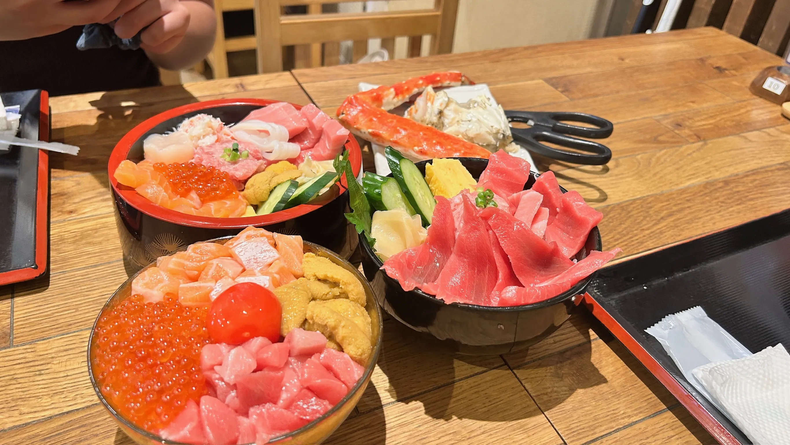 We had a late start, so only got into Kamaishi around 2pm. The seafood market where we had planned to have lunch was already cleared out for the day, but one small restaurant inside the market was still open. The three kids decided to eat here, while the parents went out looking for ramen.