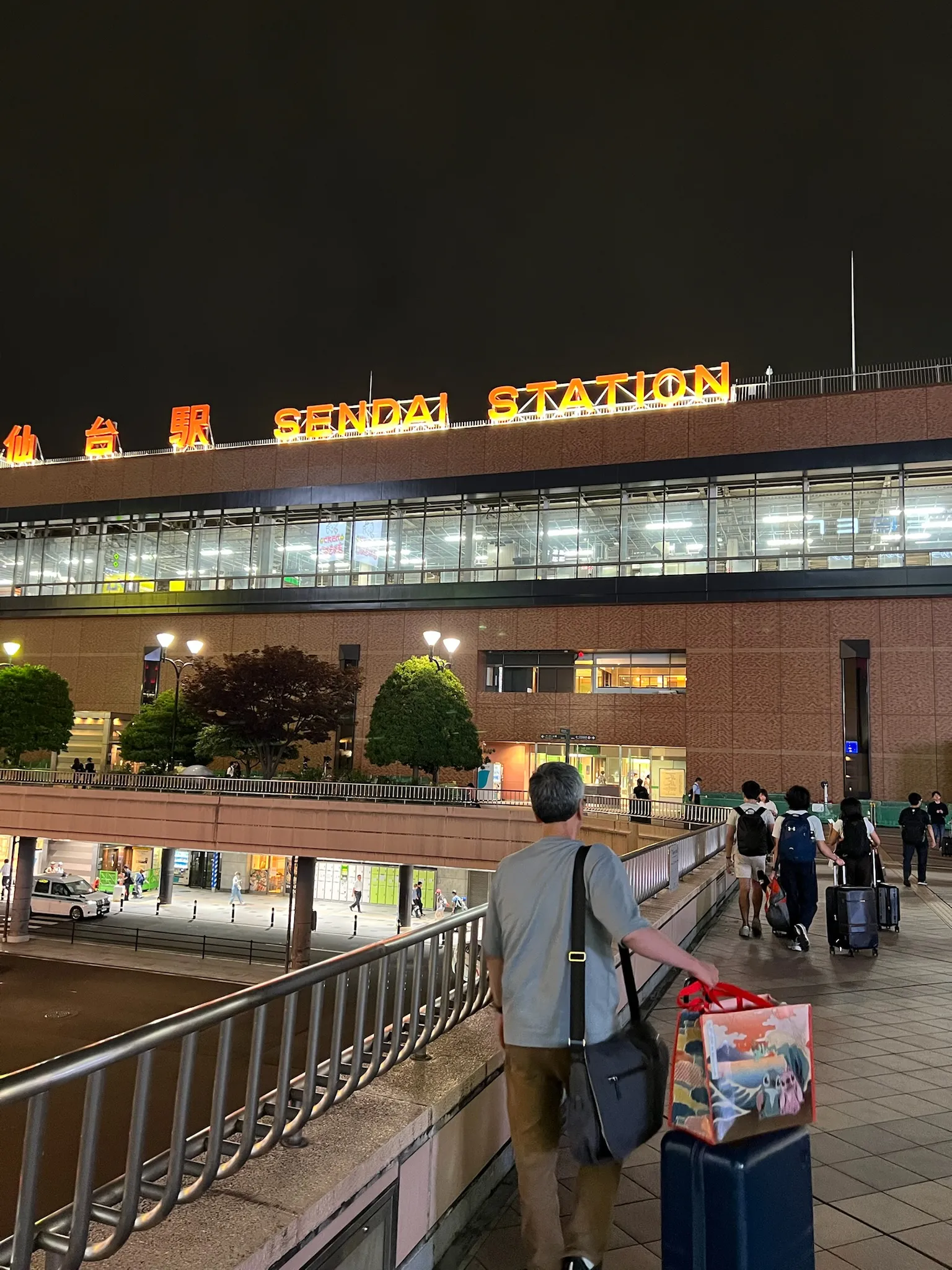 We arrived at Sendai Station just past dinnertime. Exiting the station, the first thing that I felt about the city was the crispness of its air. Part of it was the evening breeze, but there was also a cleanness and a pureness to it that you don’t feel in Tokyo, where there’s always smells or sounds or something that makes it such that the air is never in the foreground of your senses. The station exits onto a network of raised walking platforms that overlook a wide road and connects it to several malls. The roads at this time of day were busy but not hectic, the malls were lit with colorful lights but not discordant against the quietness of the evening. Everything about the first few minutes of the city were just very comfortable; it felt like somewhere you would want to return home to after a long trip. Humans are fickle, because these first few minutes probably primed me to see the rest of Sendai in this image, and I did.