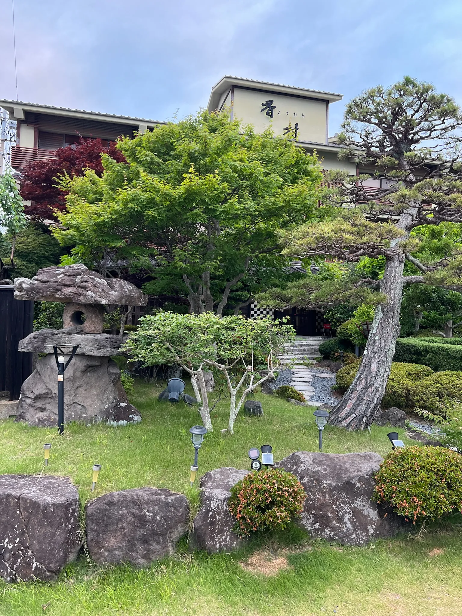 We left Sendai in the late afternoon and drove into Matsushima as the sun was starting to set. Our ryokan was tucked behind an industrial building in a discreet spot next to a river that flows into the bay. The inside of the place was designed perhaps to resemble some outdoorsy onsen complex (in a simple and almost tacky, not fancy, way), with cobblestone hallway floors and wooden eaves attached to the walls. The owners were a middle-aged couple, who just seemed so genuinely happy to see us, with no hint of the friendliness stemming from the expectations of their job. Our check-in process included a pop quiz on the number of islands in Matsushima Bay (with a massive bag of candy as my reward for having the closest answer) and meeting their toy poodles.