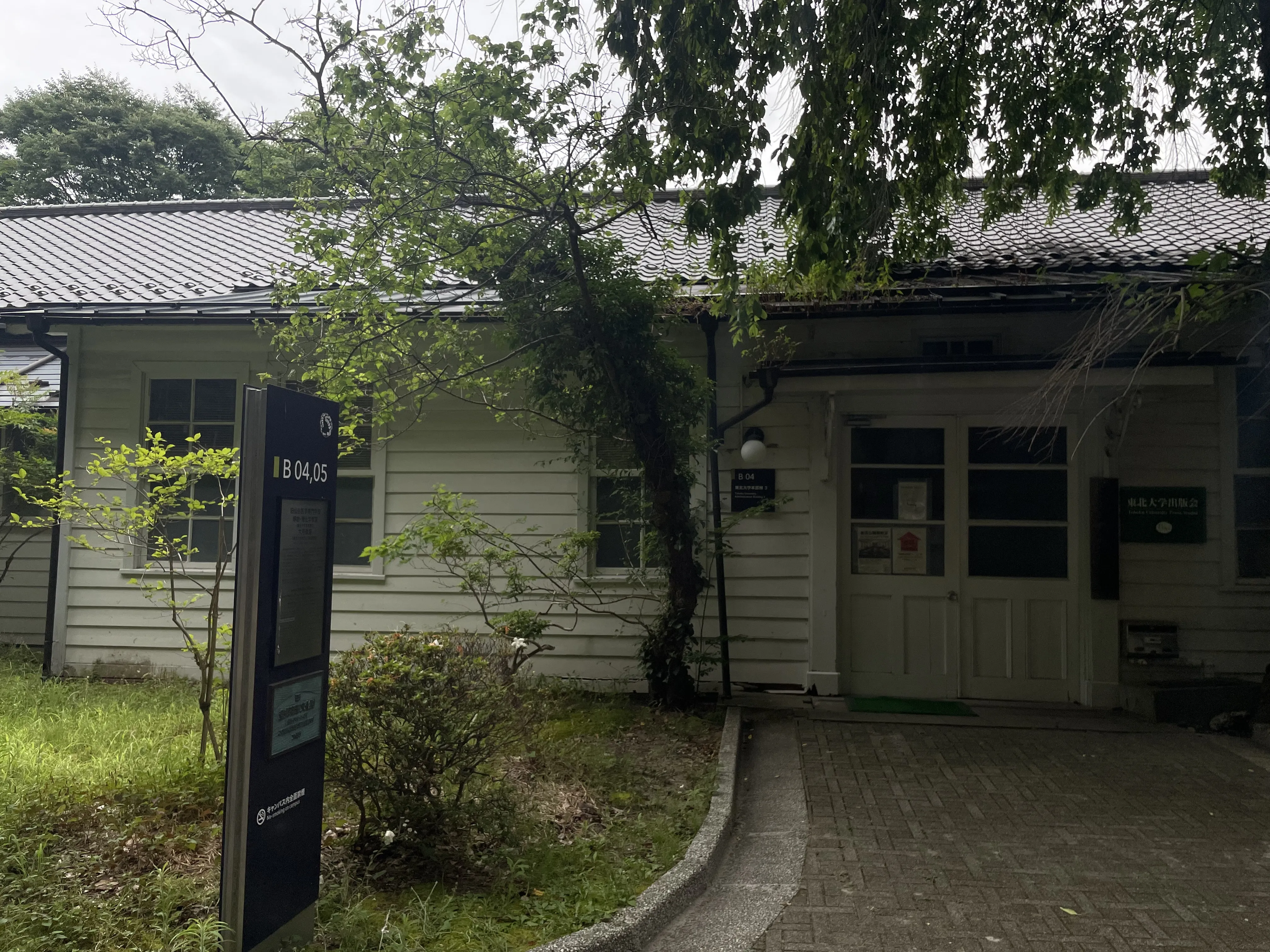 Often one or two stories about a place is sufficient to enchant it. From the museum, I walked to the Tohoku University Katahira Campus. The walk went through some neighborhoods along the river, and I stopped at a 7-Eleven for some onigiri. I had originally decided to just walk around the university grounds, though once I got in there were signs leading to the original lecture hall where Lu Xun had taken classes and some other memorials of him.